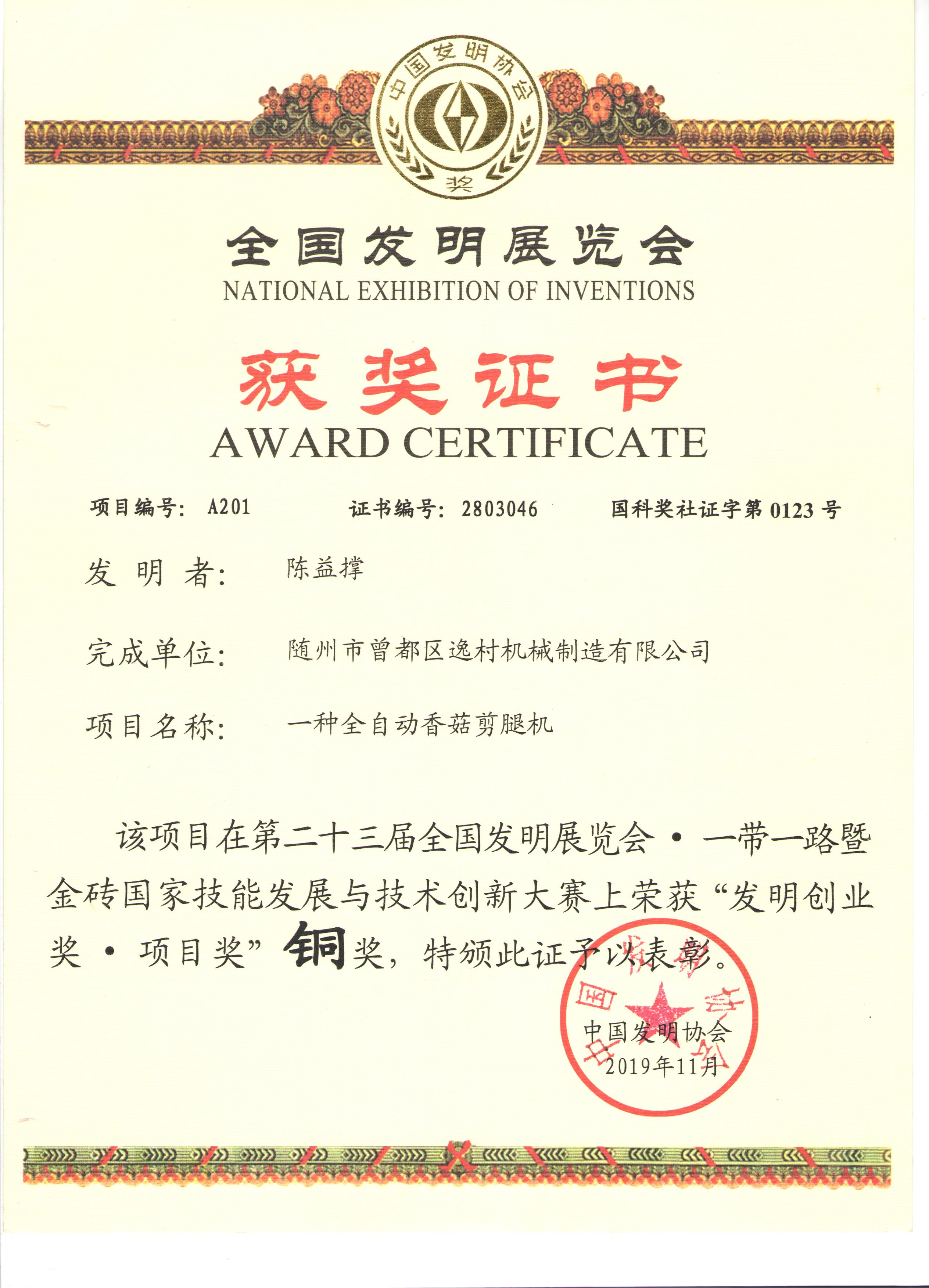 逸村食用菌扎口機(jī)榮獲國家..